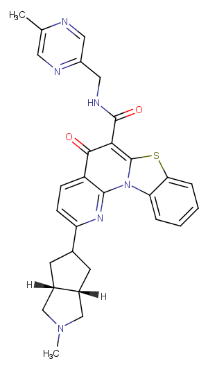 Zoliflodacin (ETX0914;AZD0914) 是一种新型的螺旋嘧啶三酮,细菌DNA促旋酶/拓扑异构酶 抑制剂。Zoliflodacin 对革兰氏阳性和阴性生物具有有效的体外抗菌活性,对金黄色葡萄球菌的b>MIC90 值为0.25 μg/mL。 |